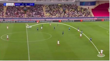 تغییرات از کنار به کنار: تغییر بازی با قطرهای بلند به فضاهای باز در نیمه مقابل.