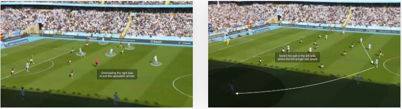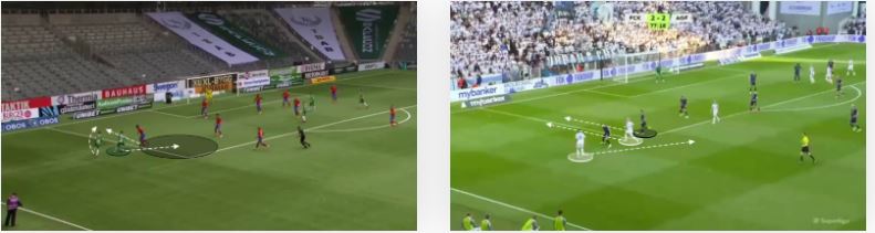 این حرکات مدافعان کناری را مجبور به انتخابهای ناخوشایند میکند و اغلب لحظات کوتاهی از بینظمی ایجاد میکند.