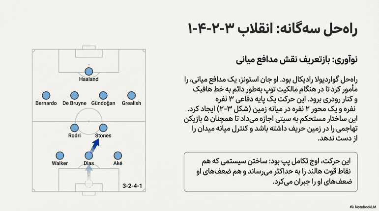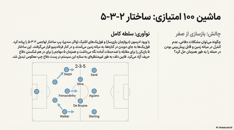 • تغییر در ضربات دروازه: پپ به جای شلیک توپ‌های بلند (که از نظر او یک قمار ۵۰-۵۰ بود)، مدافعان وسط را به داخل جریمه فراخواند تا مالکیت ۱۰۰ درصدی را حفظ کند.
