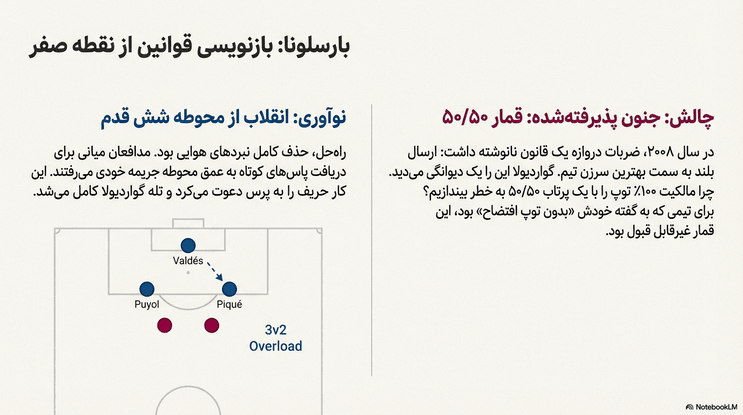 آمادگی وسواسی پپ سال‌ها پیش از ایستادن در کنار زمین آغاز شد. او به عنوان “مترونوم” تیم رویایی یوهان کرایوف، هر تغییر تاکتیکی و بحث فلسفی را تحلیل و در ذهن خود بایگانی می‌کرد. اما نکته جالب، سفر او به مکزیک در آخرین سال بازی‌اش بود تا نزد خوانما لیو شاگردی کند و فوتبال را از دریچه‌ای متفاوت ببیند. او سپس در بارسلونا B ایده‌های خود را آزمایش کرد و ثابت کرد که سبک او تنها یک افسانه نیست، بلکه پتانسیل موفقیت در بالاترین سطح را دارد.