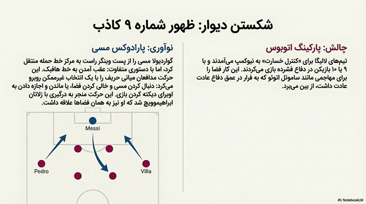• مسی در نقش ۹ کاذب: او با انتقال مسی از کناره‌ها به مرکز، برتری عددی در میانه زمین ایجاد کرد و ساختارهای دفاعی سنتی را ویران نمود.