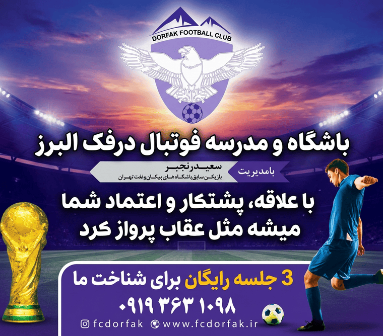 برای ثبت نام در باشگاه و مدرسه فوتبال درفک البرز تماس بگیرید09193631098